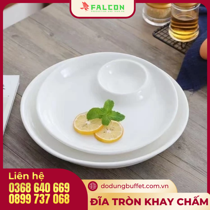 Đĩa tròn khay chấm là một thiết kế tiện lợi, thông minh dành riêng cho các mô hình phục vụ buffet, nhà hàng cao cấp hoặc khách sạn từ 3 sao trở lên. Sản phẩm tích hợp cả đĩa lớn và khay đựng nước chấm, giúp tiết kiệm không gian và tăng tính thẩm mỹ khi bày món ăn.