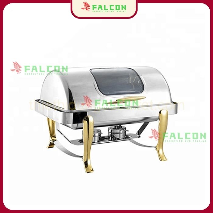 Nồi hâm buffet chữ nhật chân đúc được dùng để giữ ấm các món ăn trong tiệc buffet. Thiết kế chữ nhật với chân đúc vững chắc và mạ vàng sang trọng giúp nồi nổi bật trong không gian bữa tiệc.