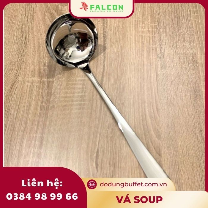 Vá súp giúp múc các món canh, súp một cách dễ dàng. Nó được thiết kế với phần lòng sâu và miệng rộng, giúp múc được nhiều nước. Vá súp còn giúp giữ nguyên hương vị của món ăn, không bị văng ra ngoài trong quá trình sử dụng.
